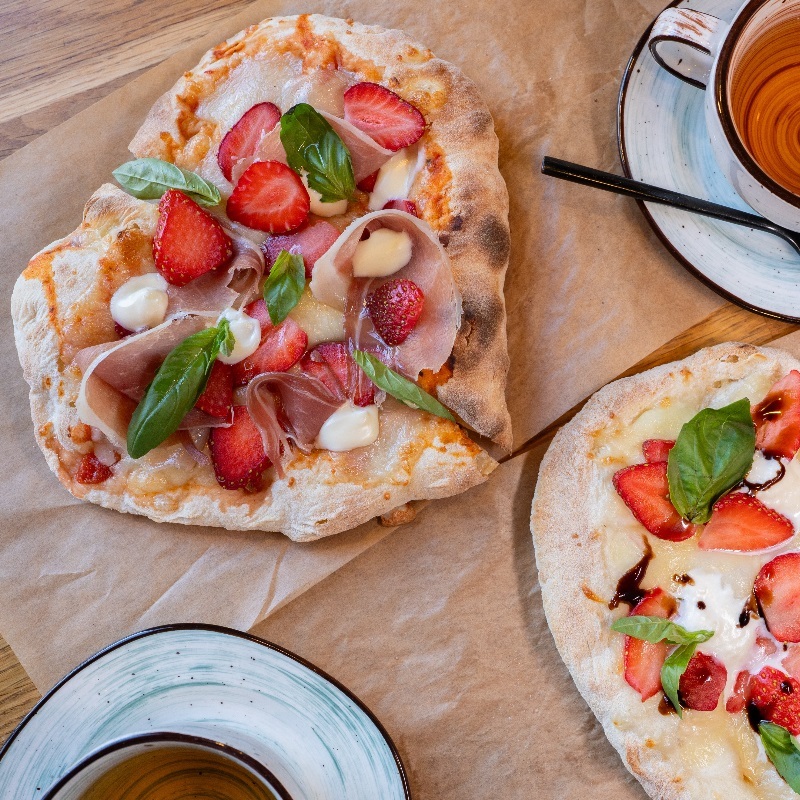 В этом году в качестве спешла к 14.02 Crispy Pizza подготовили пиццы «Ромео» (с пармой, горгонзолой клубникой) и «Джульетта» (со страчателлой, листьями базилика и клубникой), а также комбо «14 февраля», состоящее из 2 этих пицц!